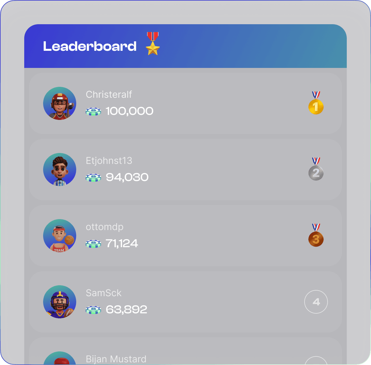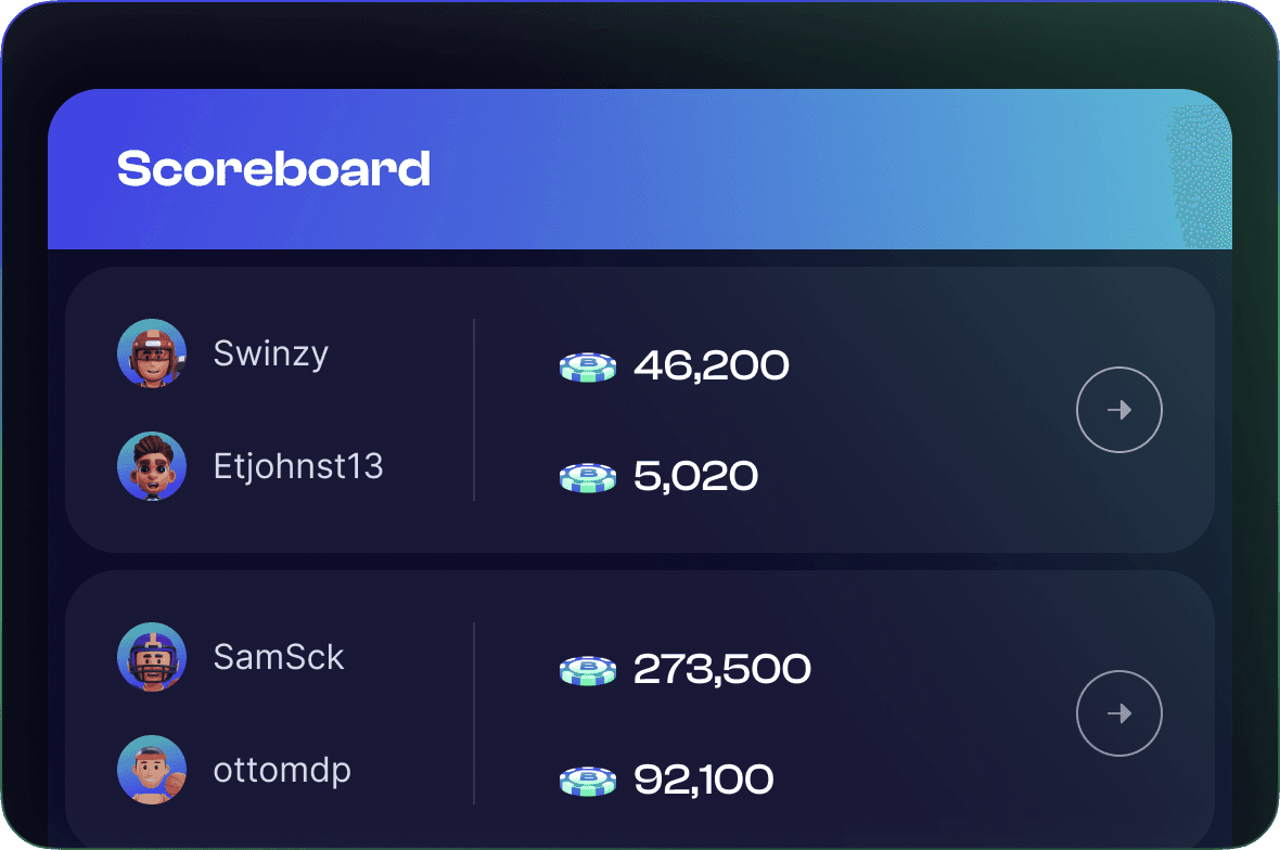Like a premium sportsbook, you can choose outcomes, parlays, props, and in-game odds. Start with the same balance as your opponent and use all the options to create and execute a winning strategy.